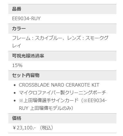 CROSSBLADEと同様のスペックでCROSSBLADE NAROのレンズ幅は、CROSSBLADEのレンズ幅よりも左右5mm狭くなっています。小顔の方や女性の方にお勧めのモデルになります。